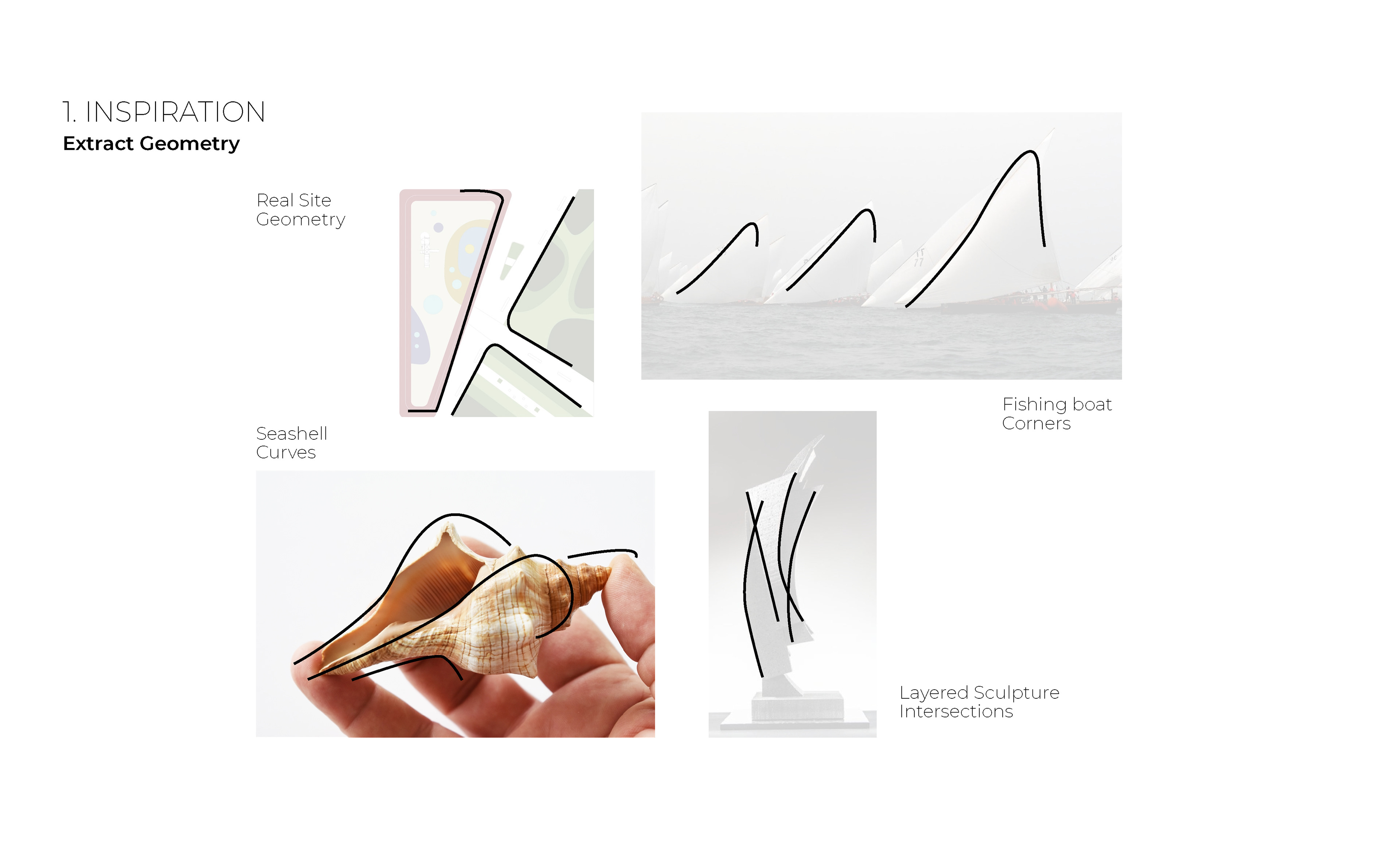 Finding common terminologies and by abstracting main profile of each item, a scenic sense of smooth curvature with floating edges and subtle details is more likely the way to go.